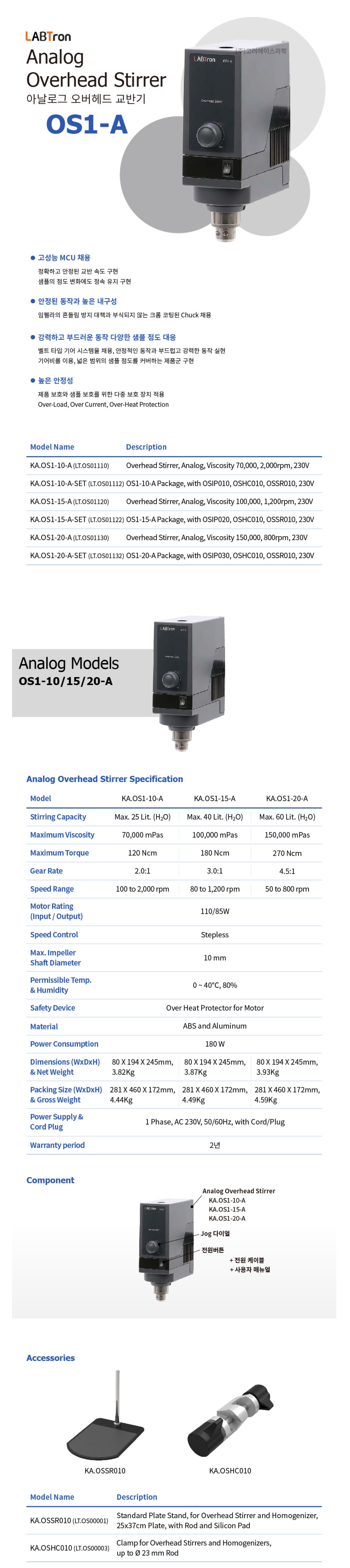 Analon Overhead Stirrers, OS1 (아날로그 오버헤드 교반기)