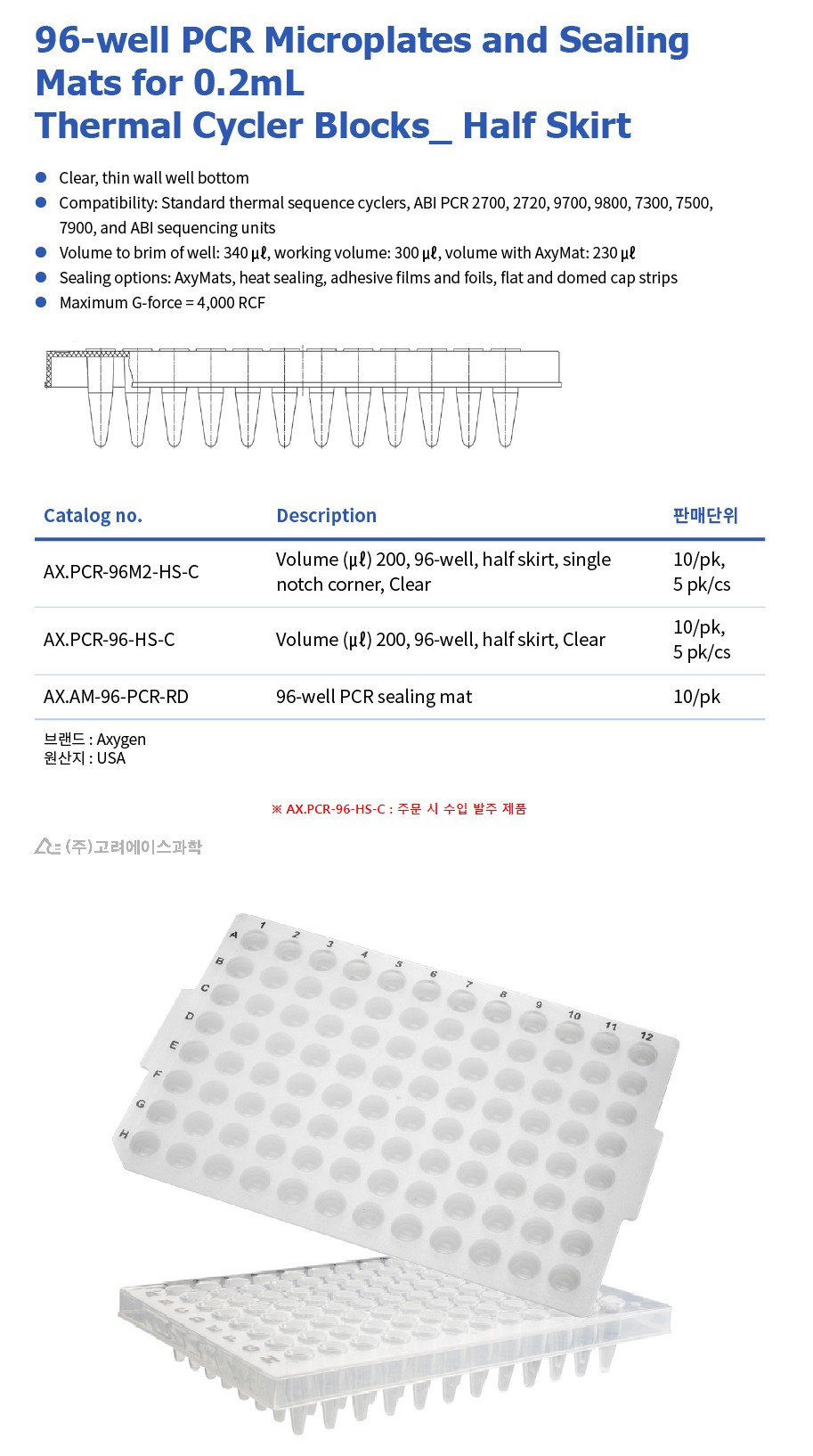 AX.PCR-96-HS-C : 주문 시 수입 발주 제품(가격 별도 문의)