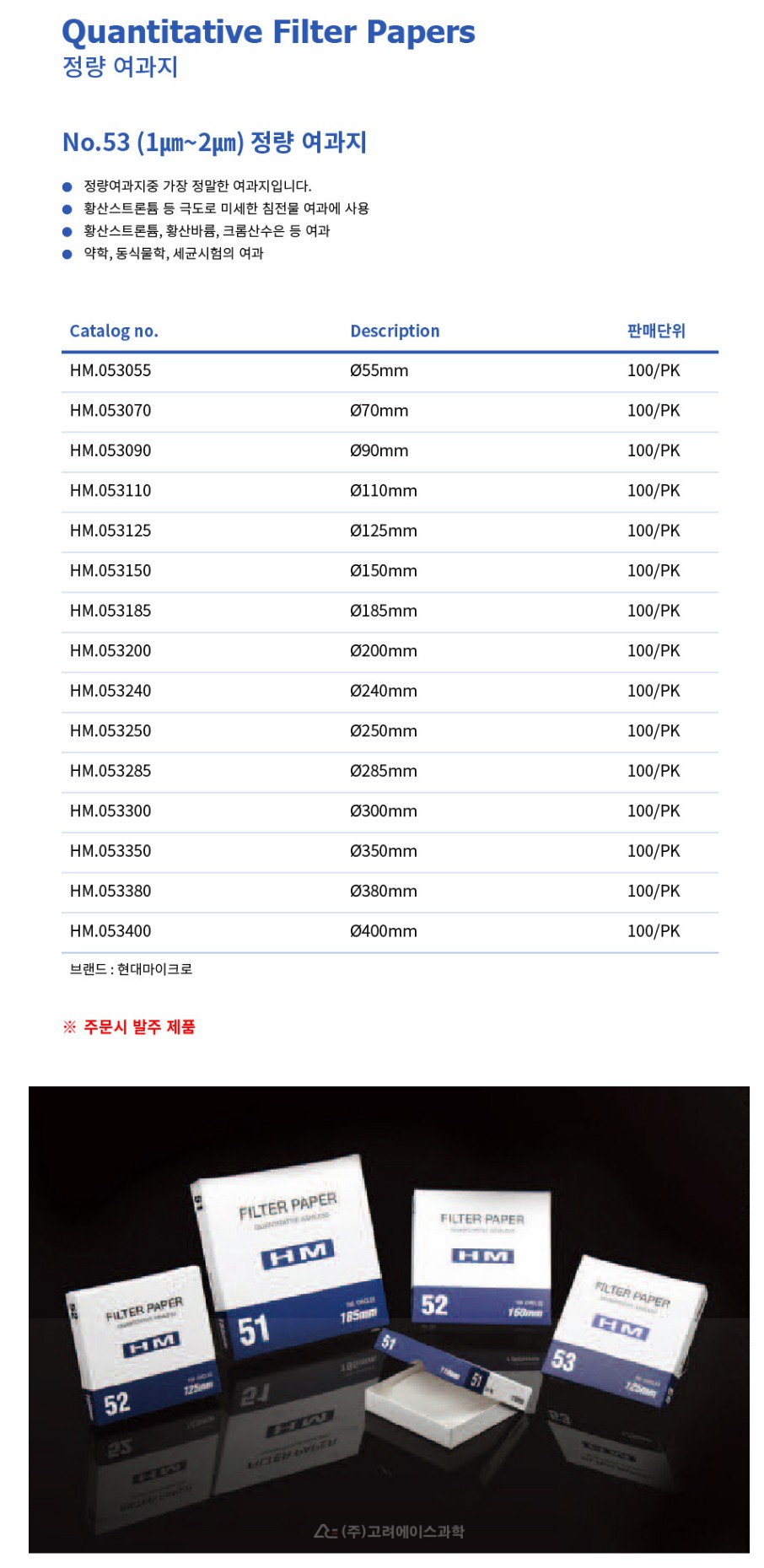 Quantitative Filter Paper - No.53 (1㎛~2㎛) 정량 여과지