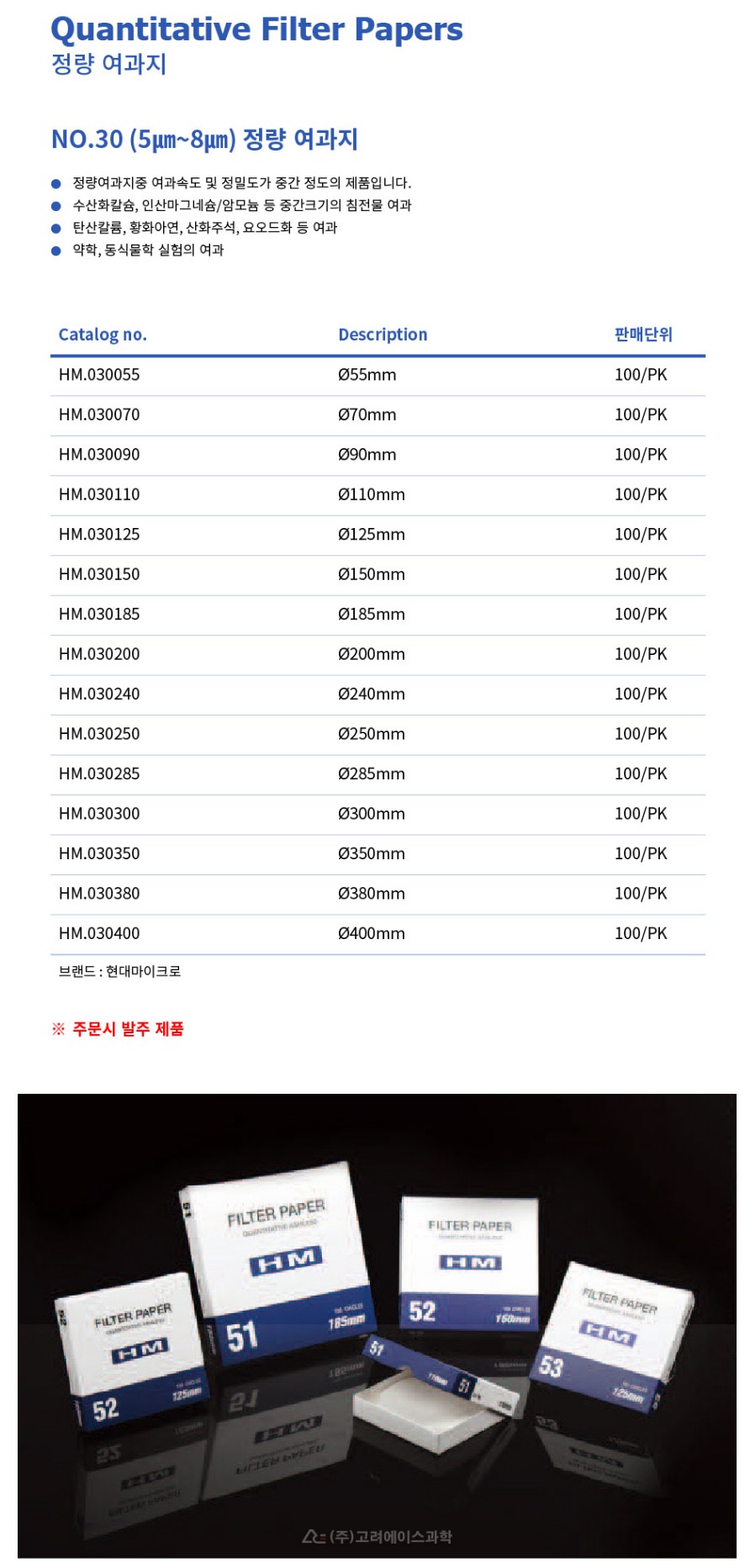 Quantitative Filter Paper - No.30 (5㎛~8㎛) 정량 여과지
