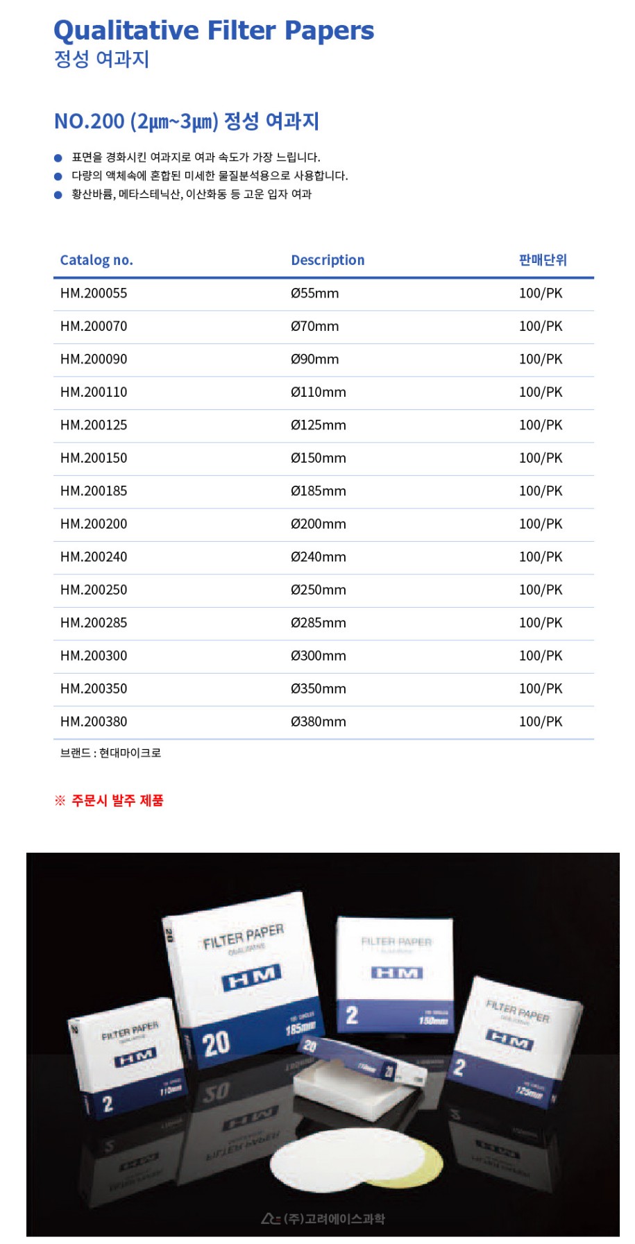 Qualitative Filter Paper - No.200 (2㎛~3㎛) 정성 여과지