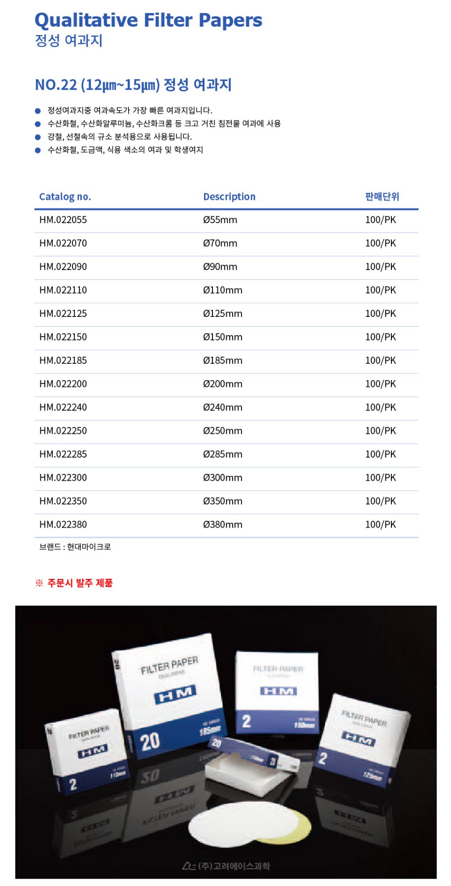 Qualitative Filter Paper - No.22 (12㎛~15㎛) 정성 여과지