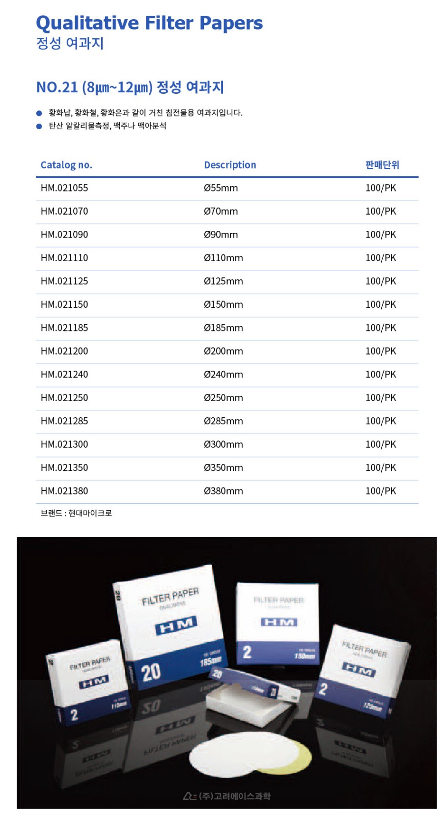 Qualitative Filter Paper - No.21 (8㎛~12㎛) 정성 여과지