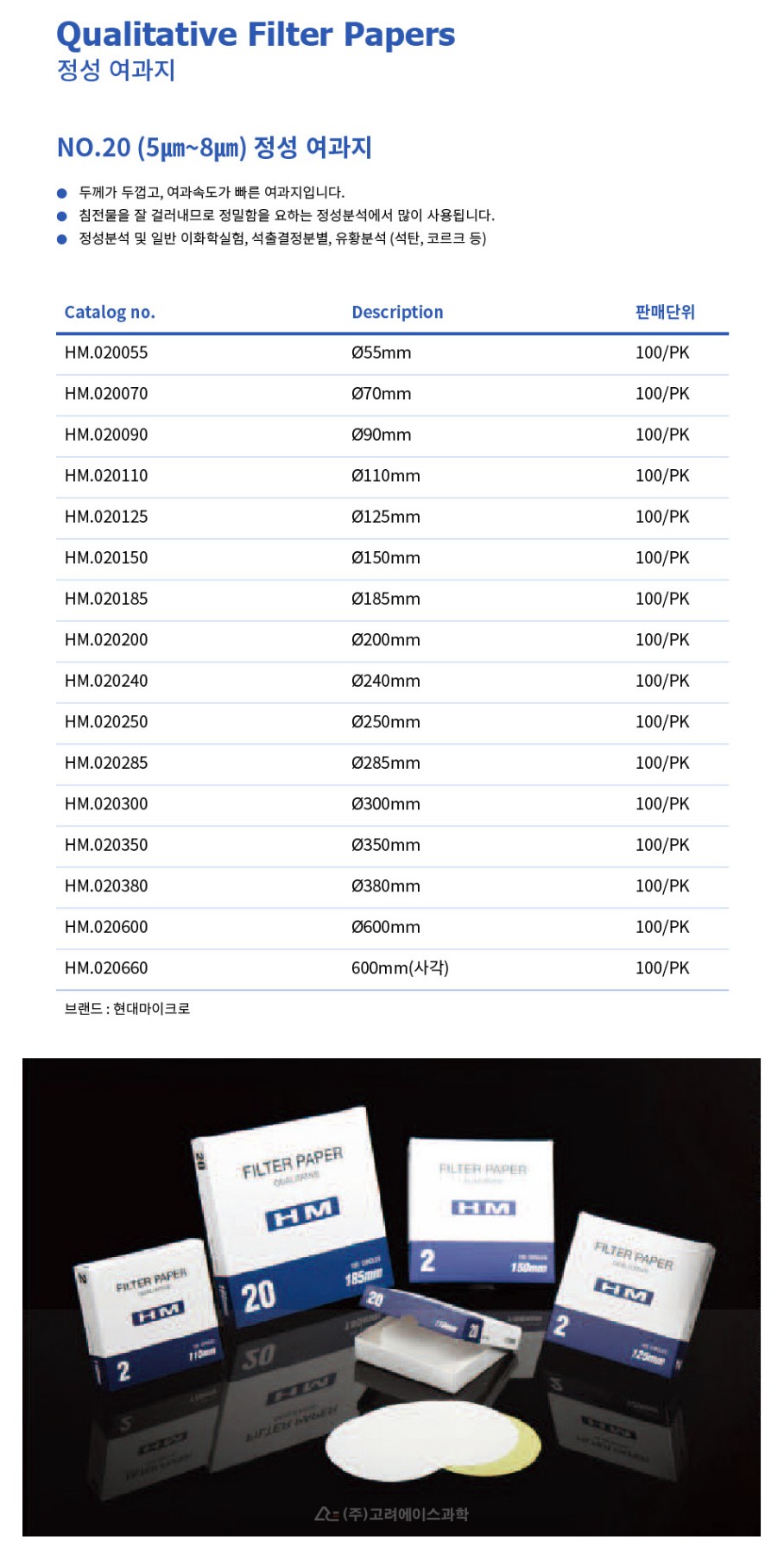 Qualitative Filter Paper - No.20 (5㎛~8㎛) 정성 여과지